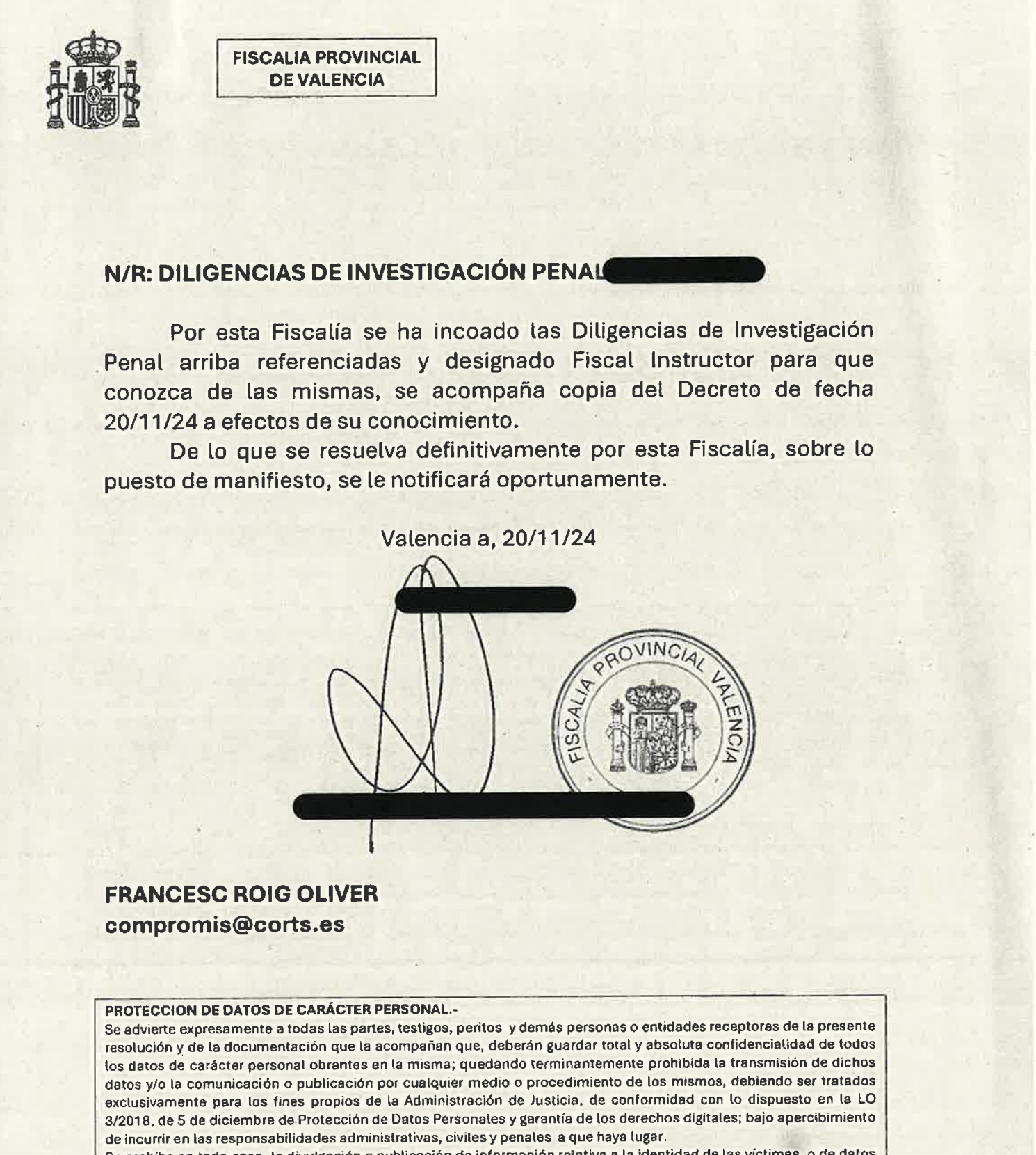 El portaveu de polítiques LGTBI de Compromís a Les Corts, Francesc Roig, ha fet públic que la Fiscalia ha obert diligències contra la Fundació Sant Vicent Màrtir arran de la denuncia que va interposar la coalició valencianista. El Ministeri Fiscal està investigant esta entitat per promoure formacions en pseudoteràpies de conversió homòfobes a 60 centres educatius diocesans.