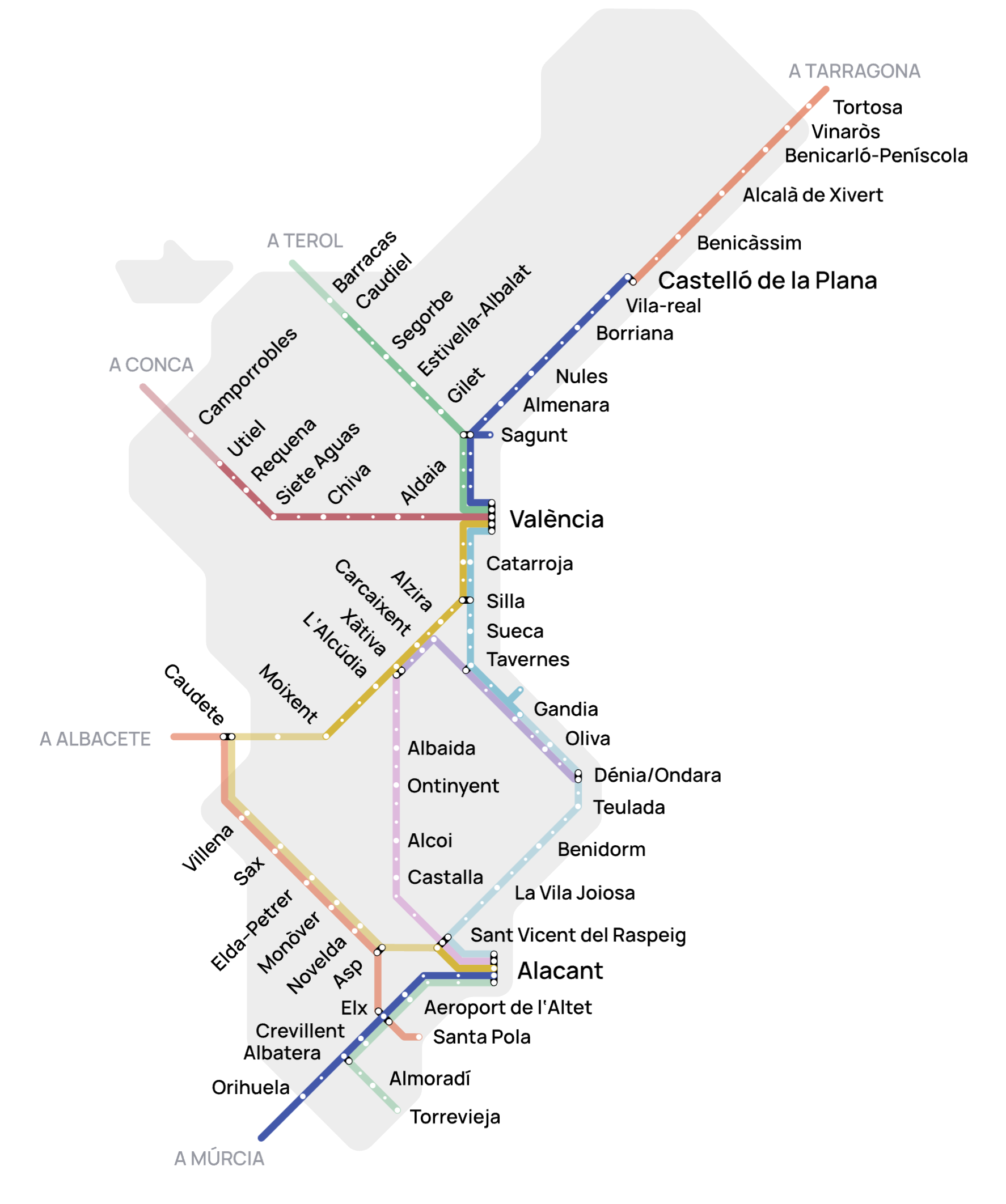 “El Pla Valencià de Rodalies dotarà d’una alternativa amb ferrocarril allí on hui dia no existeix com a Torrevella, recuperarà el tren Gandia-Oliva-Dénia, 50 anys després per a connectar les comarques de la Safor i la Marina, així com, una aposta ferma per la ciutat de València amb el desenvolupament del túnel passant, com el compromís ferm de soterrar Serradora, i la connexió directa entre les estacions de Sant Isidre i València Nord”, ha subratllat Ibáñez.