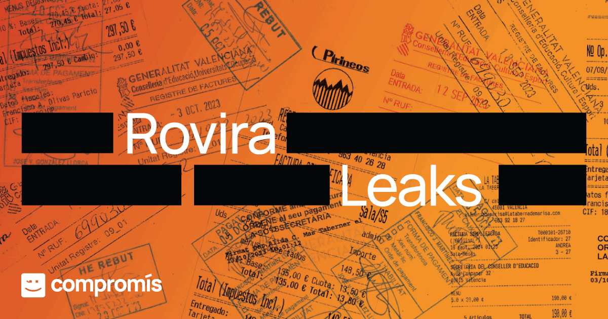 Ho ha desvetllat el síndic de Compromís, Joan Baldoví, junt amb els diputats d’Educació i Cultura de la coalició, Gerard Fullana i Verònica Ruiz. Així mateix, s’ha posat a disposició de la ciutadania l’espai web roviraleaks.compromis.net , amb el detall de tots els tiquets de restaurants i marisqueries que el conseller Rovira ha obligat que se paguen amb diners públics.